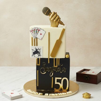 This elegant black and gold cake is a popular design choice for high-end celebrations like milestone birthdays (e.g., 30th, 40th, 50th) and anniversaries.